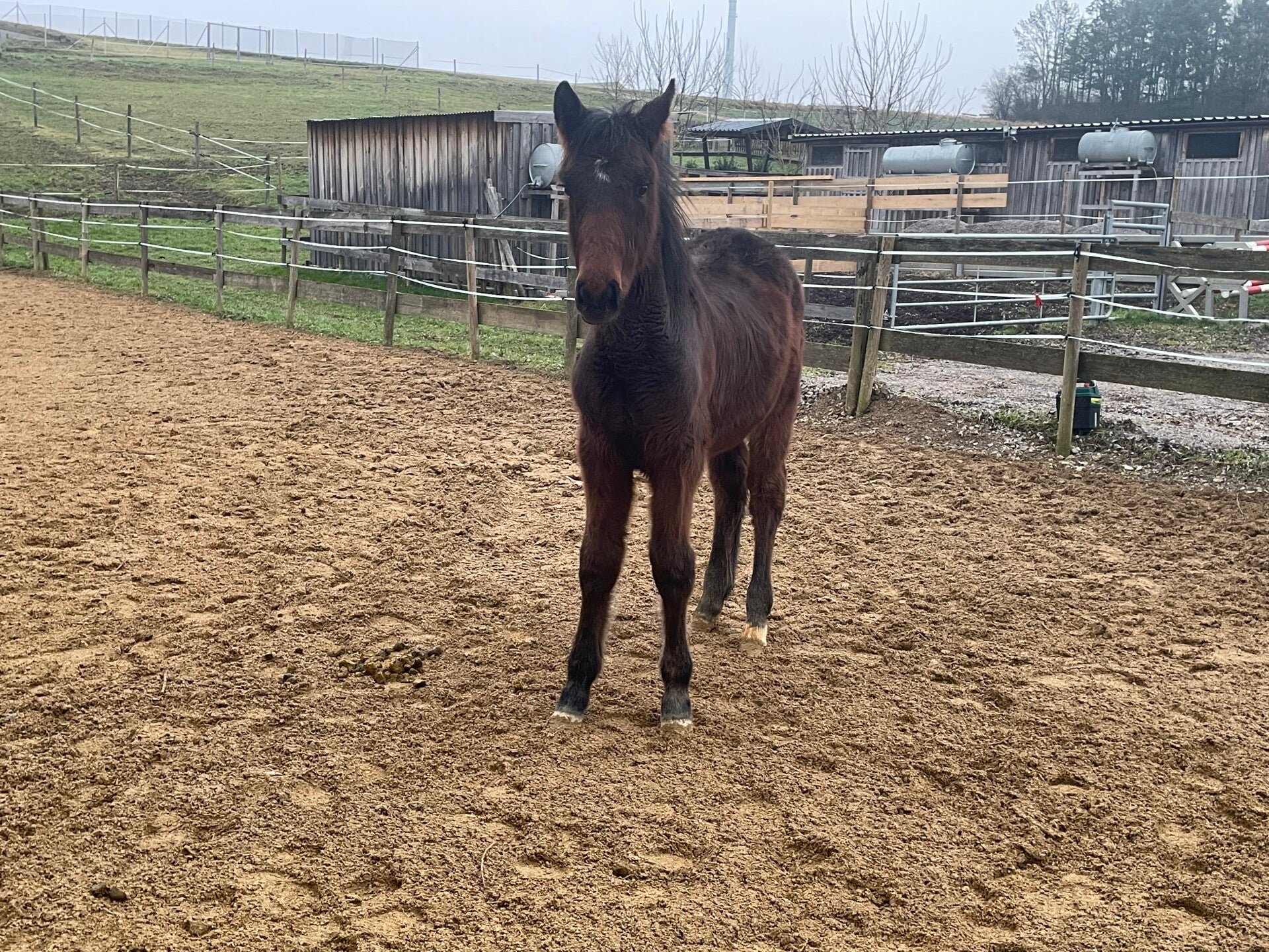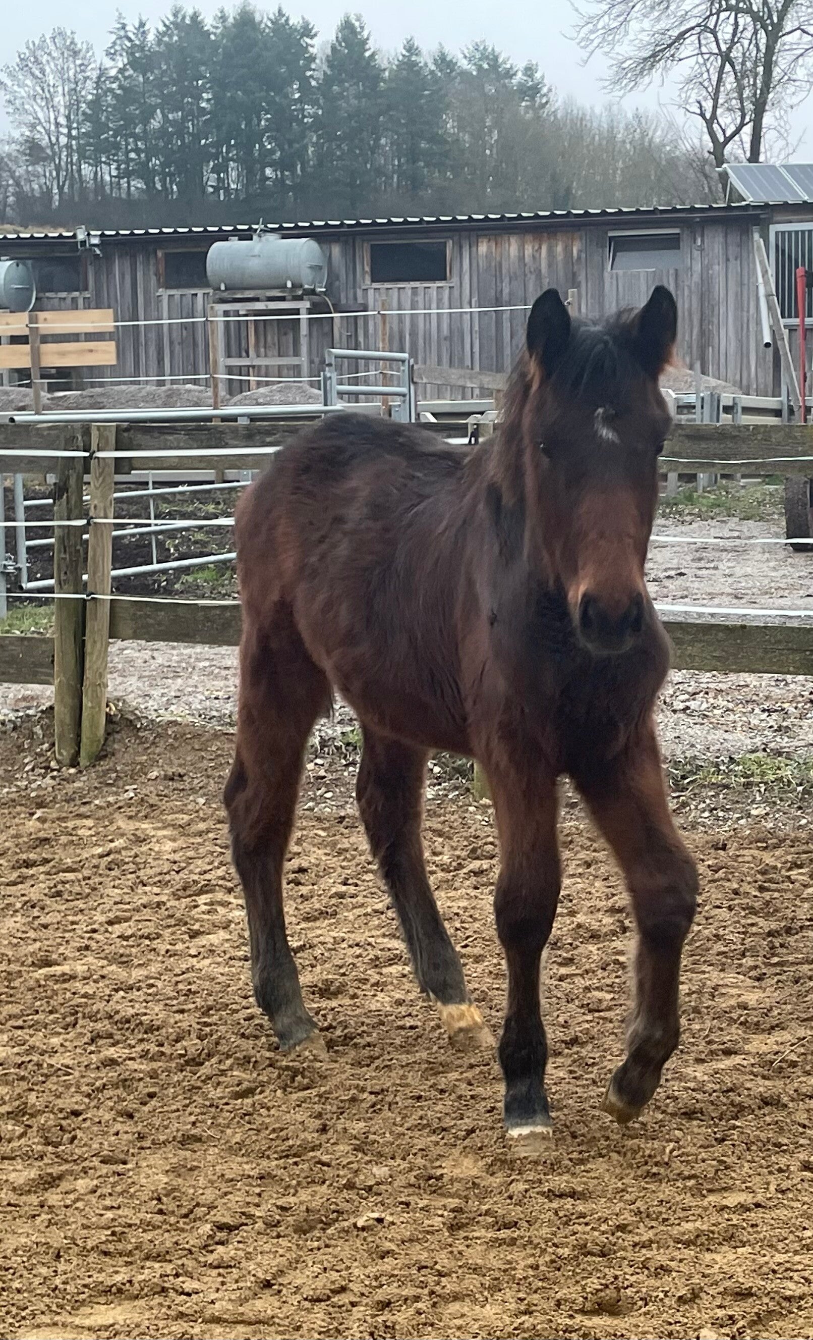Caruso ist ein dunkelbraunes Hengstfohlen von Costa Carlo, aus einer Lord Sinclair III Stute (Leticia).